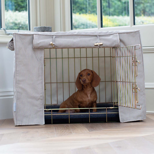 Dog Cage with Cushion & Bumper in Regency Stripe by Lords & Labradors