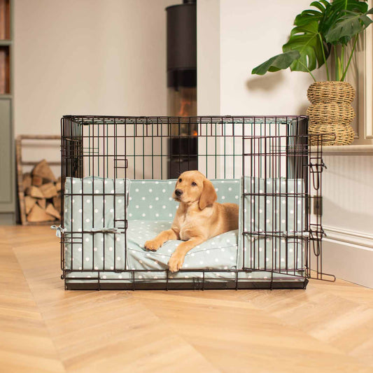 Dog Cage with Cushion & Bumper in Duck Egg Spot by Lords & Labradors
