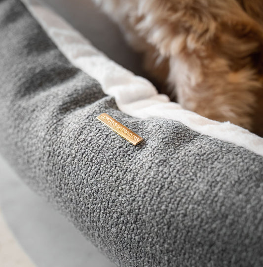 Cozy & Calming Puppy Cage Bed In Granite Bouclé by Lords & Labradors