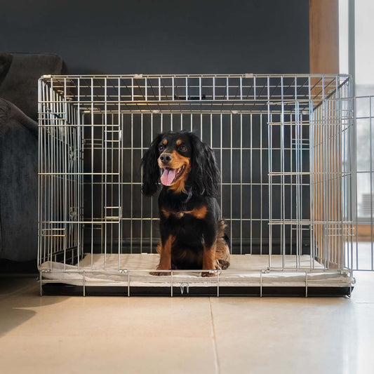 Cozy & Calming Puppy Cage Bed in Spots & Stripes by Lords & Labradors